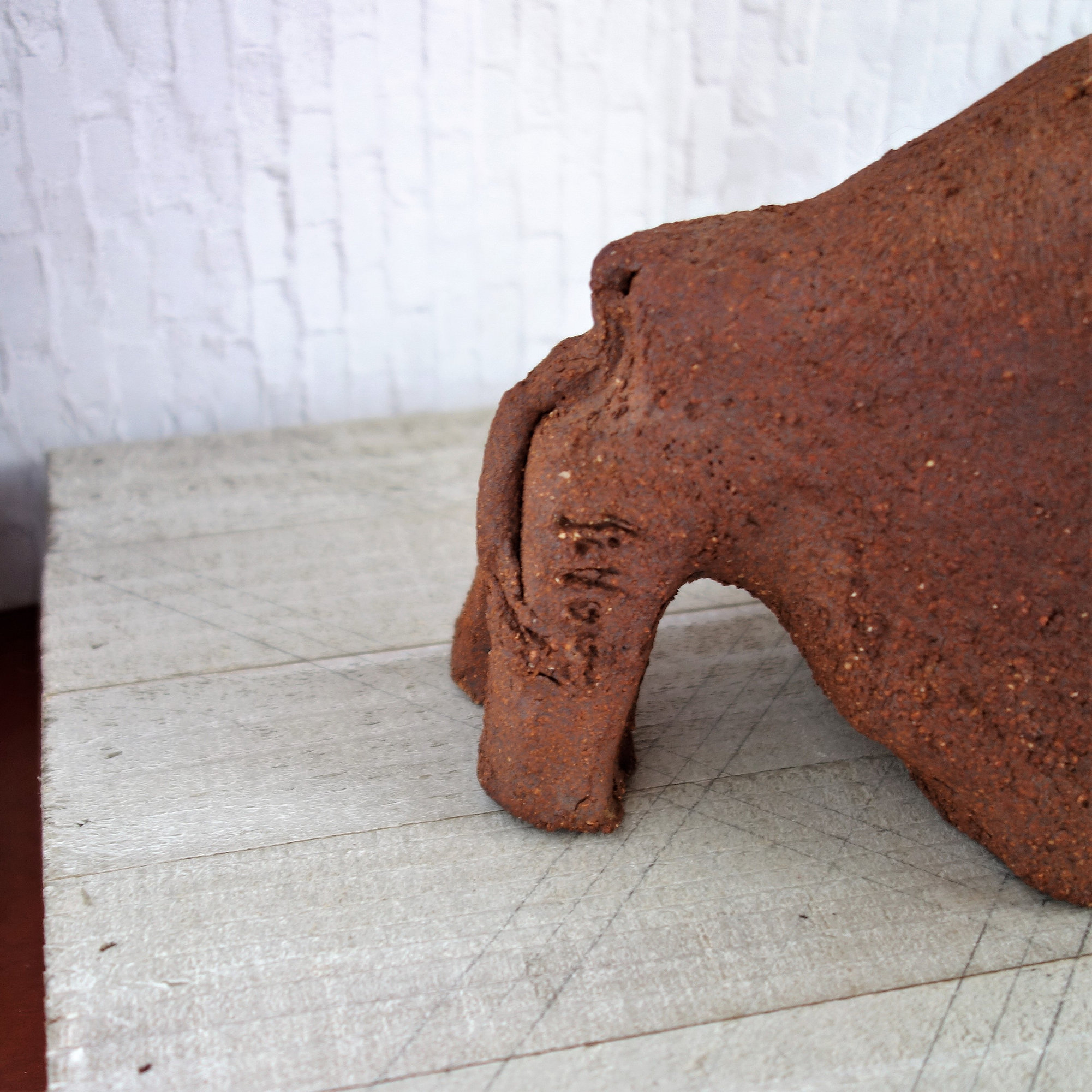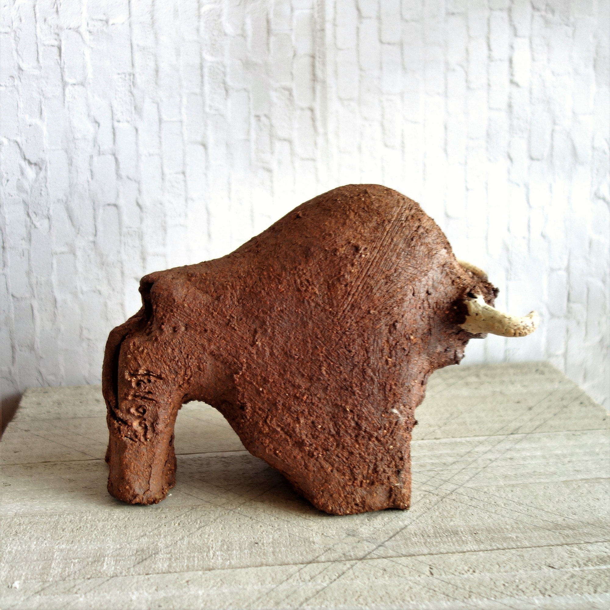 primitive art stone bison, buffalo sculpture, hand carved folk art, tribal art vintage decor, unique collectible original carving, signed art rustic sculpture, natural stone artisan statue
