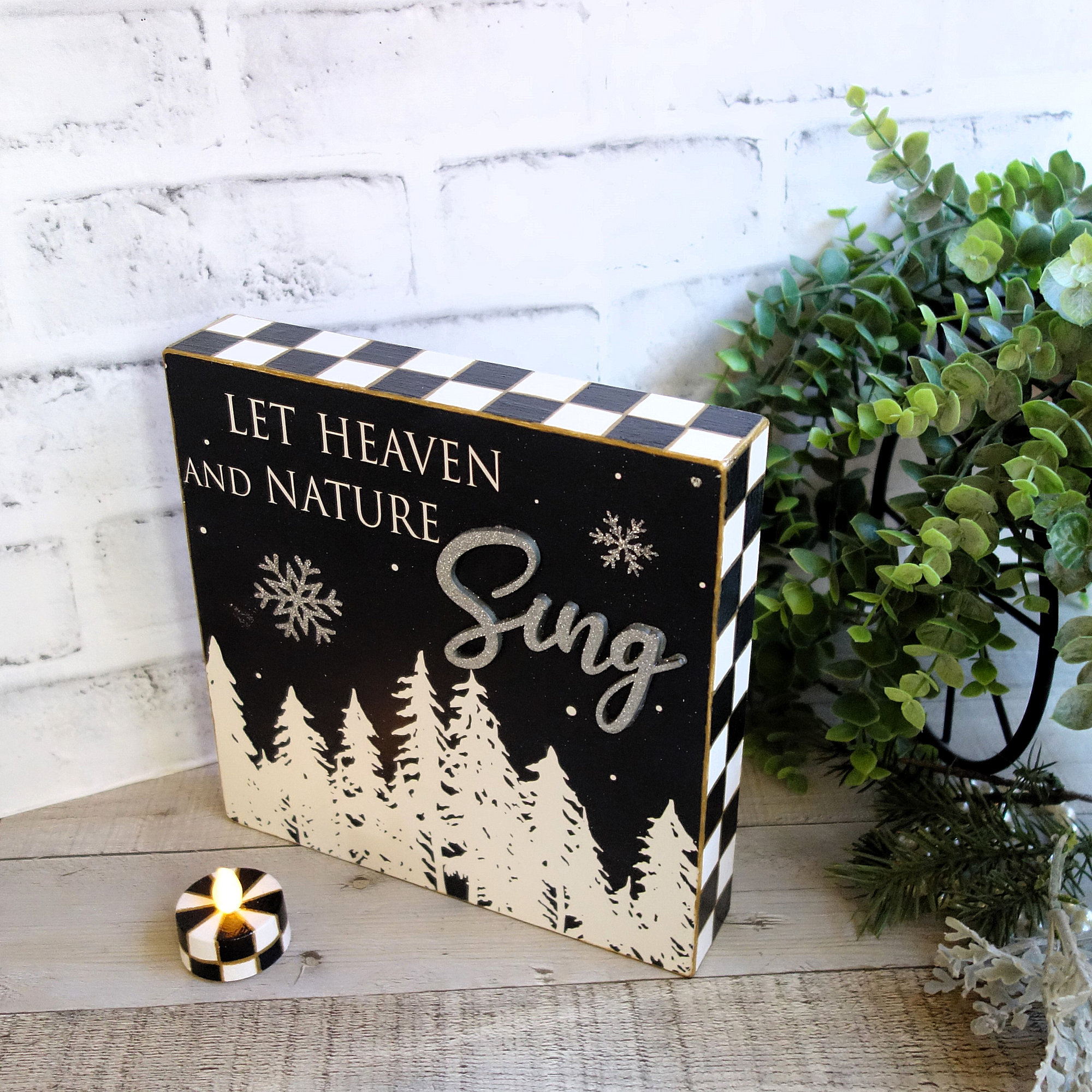 Display this seasonal checked winter sign in a foyer to greet holiday guests, nestled with checked fireplace mantle decor, resting next to a guest bedside table or even along a narrow hallway. Box style design allows free standing or display on the wall.