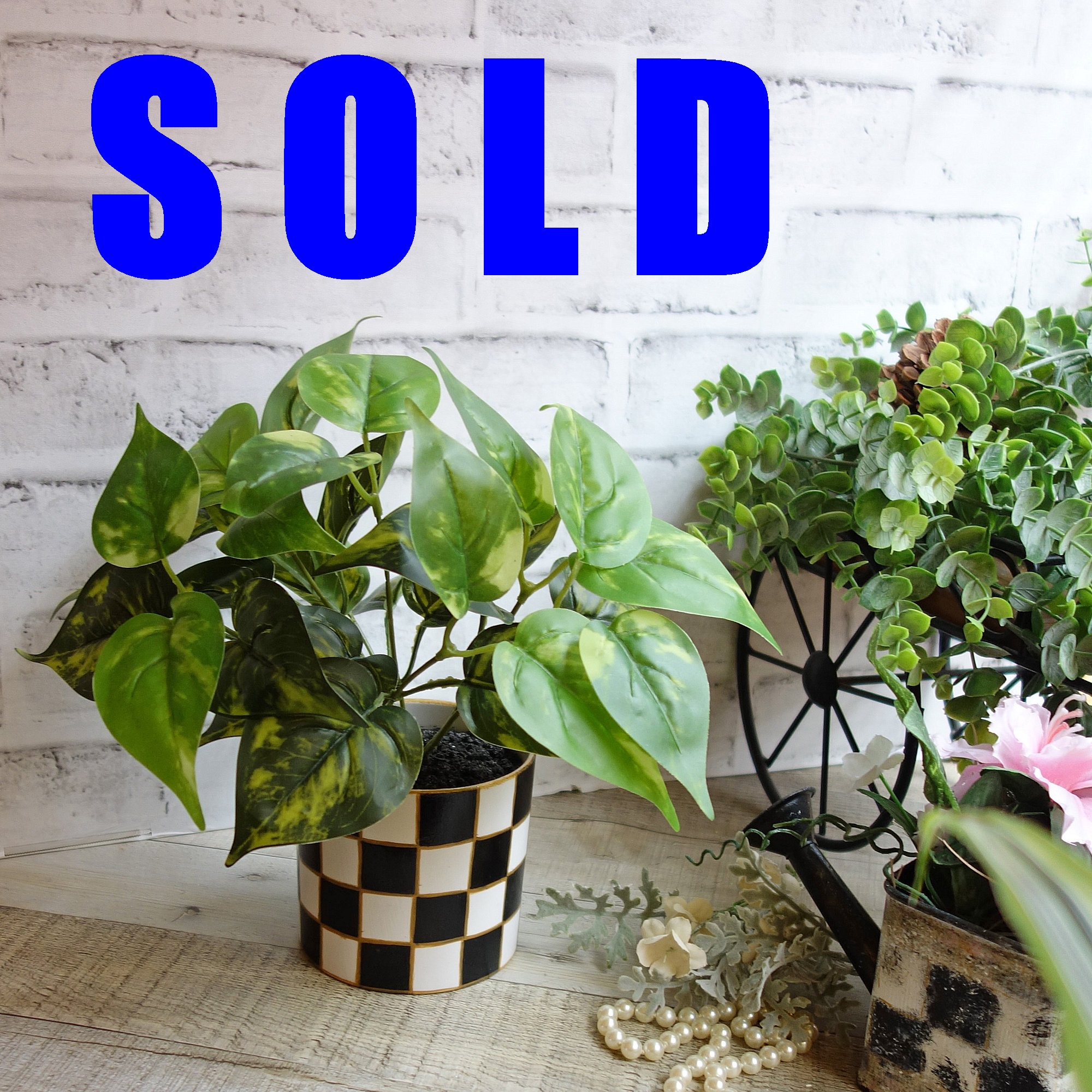 Shopping for checked spring and summer décor made easy! New checked flower pot décor that will look great with your courtly checked collection, buffalo check décor, farmhouse and even French country décor – this artificial pothos plant looks incredibly real. Add a pop of color and cozy to your home or give it as a gift. Checked courtly décor you can add to your mantle, decorate your sunroom or set next to a window. Pot size is 3.5 x 3.5 in.; total height 10 in.; weight 12 oz. *insured shipping