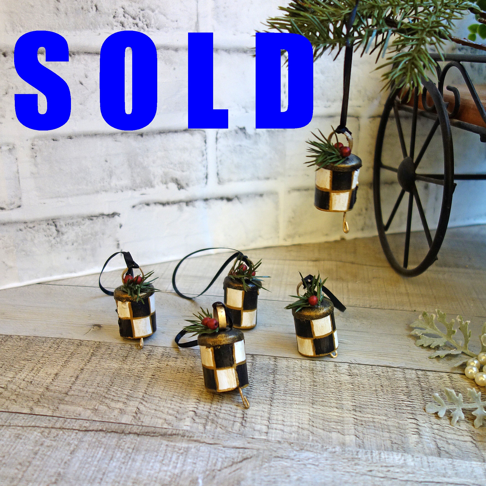 Checkered Bell Christmas Ornaments - Set of 5 **Does not Ring/Jingle**