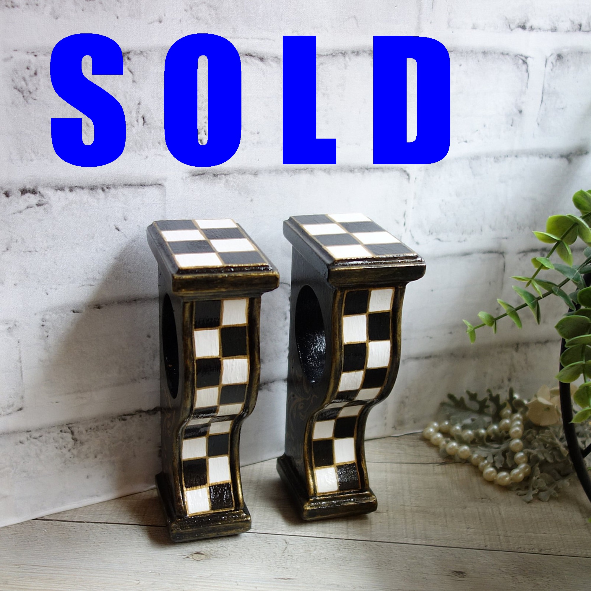 Add a touch of elegant design to your home decor with this unique Set of Two Decorative Checked Small Accent Shelf Corbels. Hand-painted with black and white checkerboard pattern, these corbels offer a bold and sophisticated twist on traditional architectural details. They are the perfect statement piece to bring a touch of whimsical charm, modern farmhouse, or eclectic flair to any room.