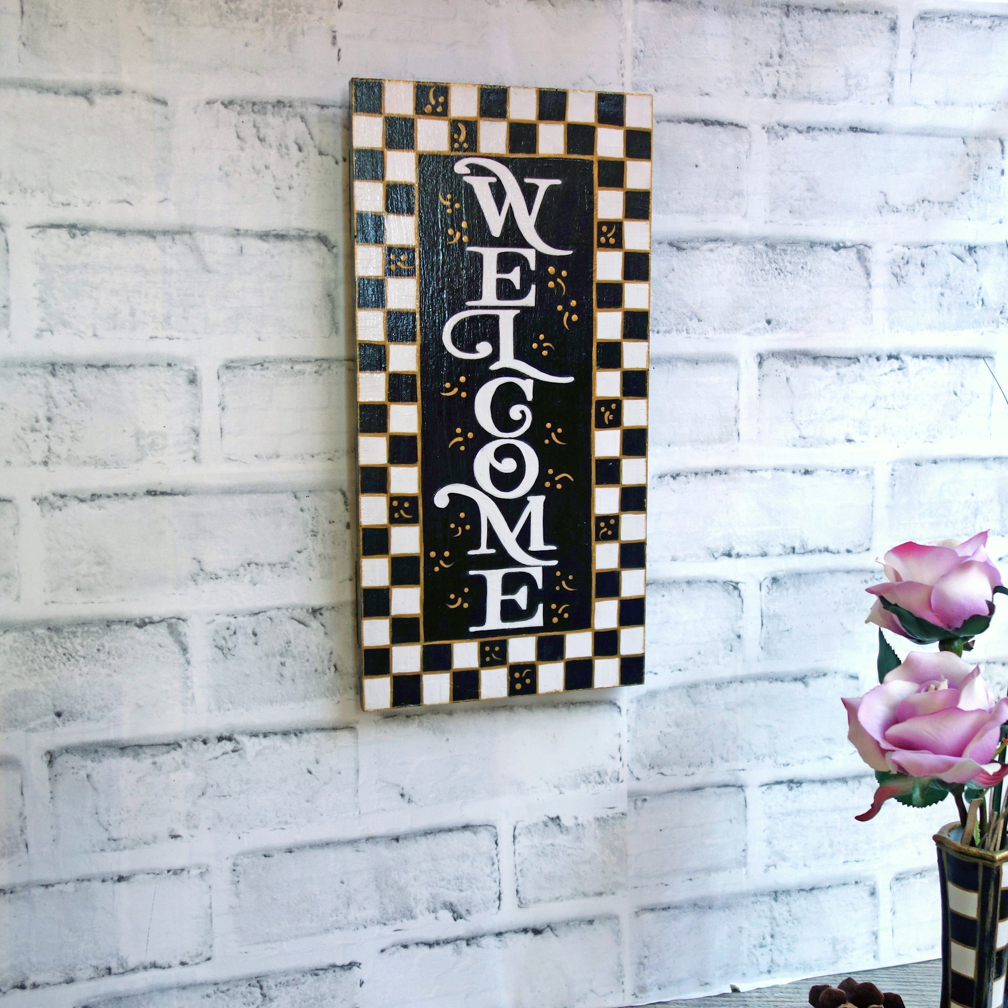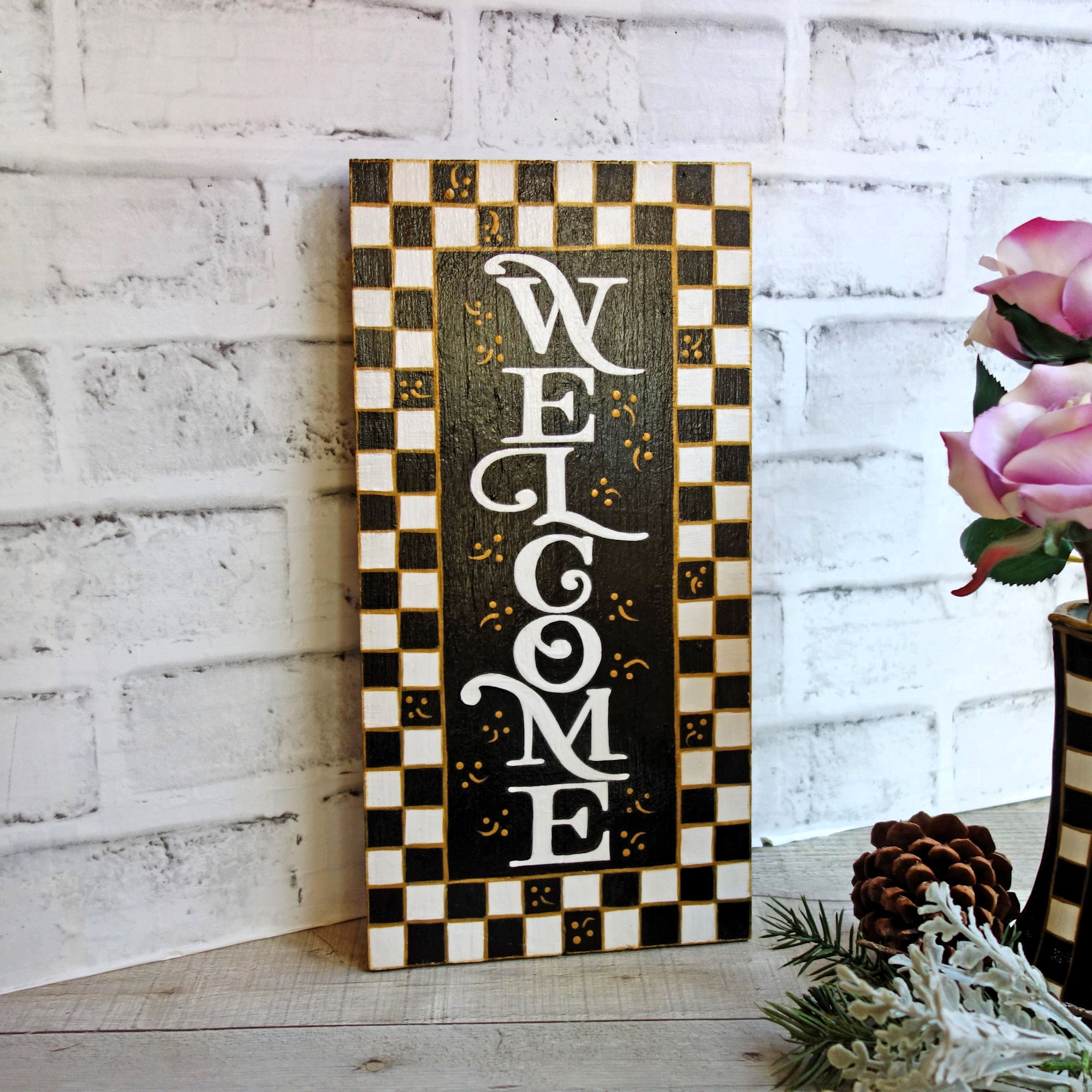 Each of my Welcome signs is a unique work of art, showcasing the natural texture of the wood and the individual brushstrokes of the hand-painted details. Whether you are looking to refresh your own home or searching for a thoughtful housewarming gift, this checkered sign brings a "whimsical-meets-classic" vibe that never goes out of style.